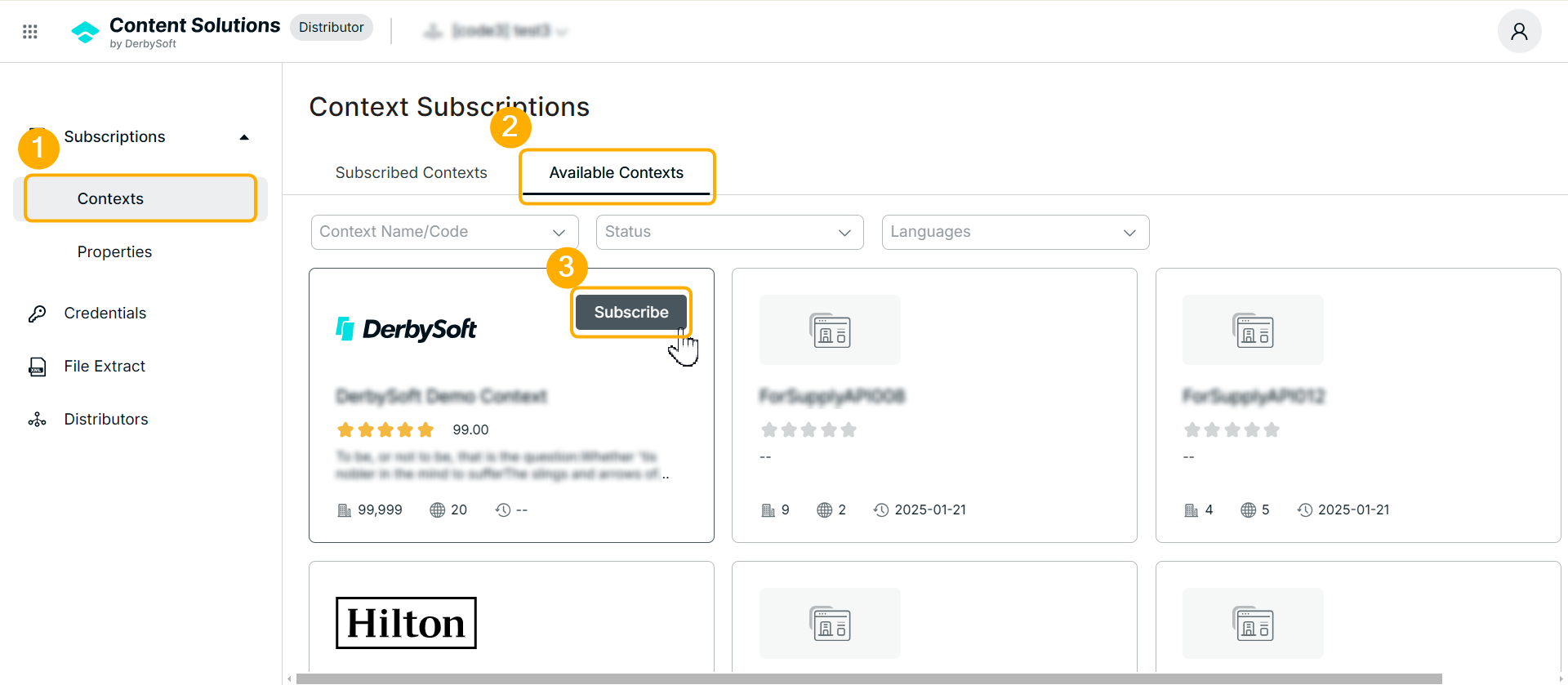 - Navigate to: Subscription > Contexts > Available Contexts