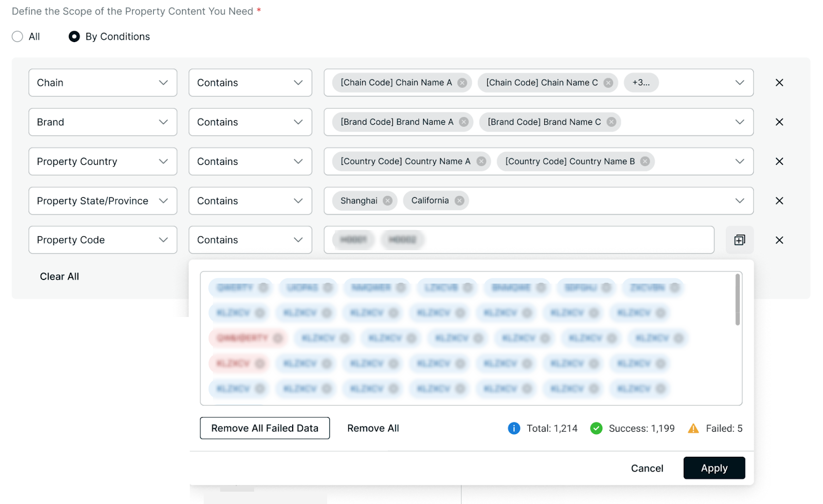 Notes: If you want to filter by property code, the system will check the availability of the codes you input. Make sure they are correct before clicking the Apply button.