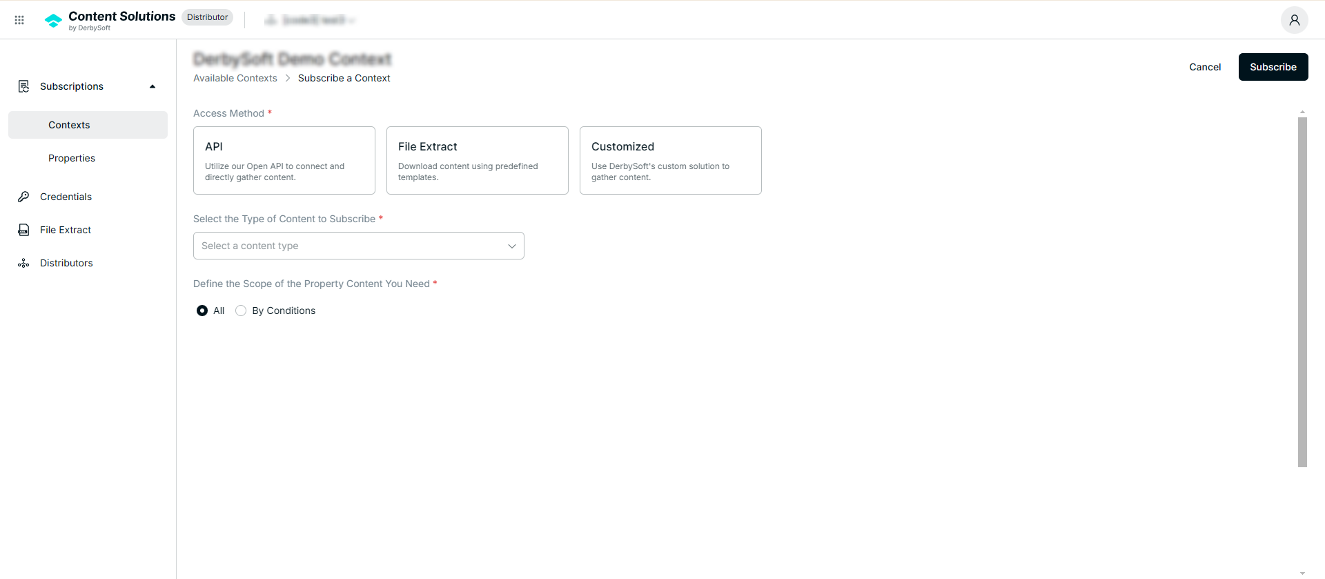 When finished configuring your subscription, click Subscribe. You can revisit and modify these details in the Subscribed Context.