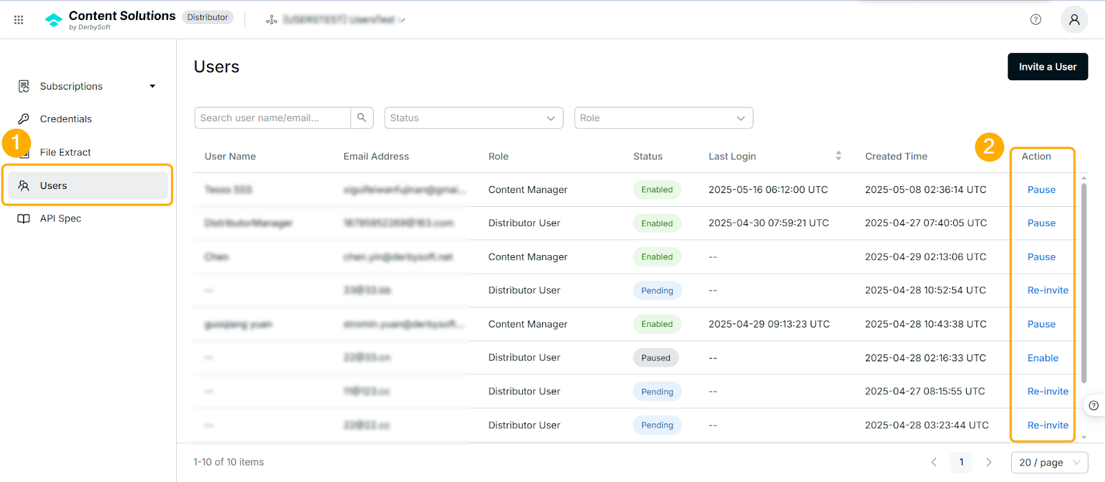 - Navigate to Users -> Locate the user -> Action column -> Select Pause/Enable